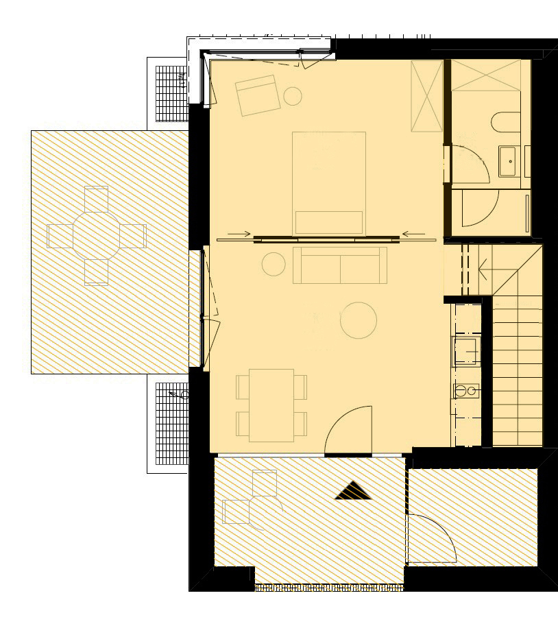 • 2.5 Zimmer-Wohnung (1 Schlafzimmer, Wohnzimmer, Essbereich, Küche, zusätzlich 27m2 Atelier im UG)